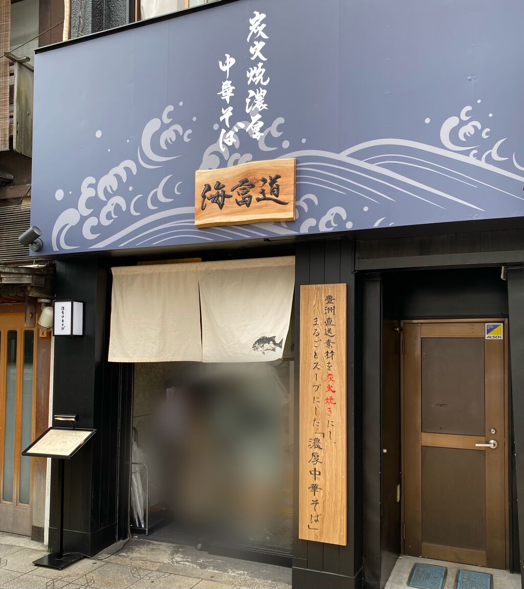 「炭火焼濃厚中華そば 海富道」さんです。〈しーふーどう〉と読むみたいです。「175°DENO担々麺」さんの跡地です。営業車でよくこちらの前の道を通るのですが、看板にありました、
