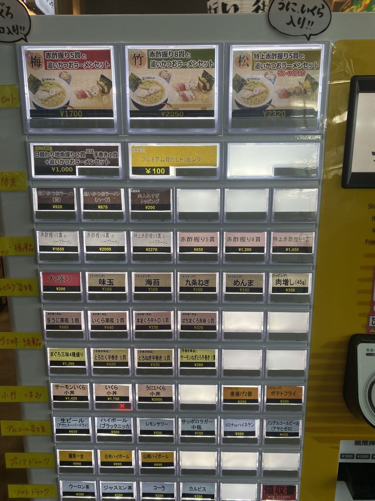 みなとみらい一番街店さんは「追いかつおラーメン」のトッピングとして「プレミアム貝だし」がある感じですね。それなら、今回はノーマルの、